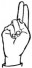 На ћирилици написано КОСТАДИН ДАЧИЋ састоји се из 13 слова [?]. Исписано ћириличном једноручном азбуком за глувонеме: